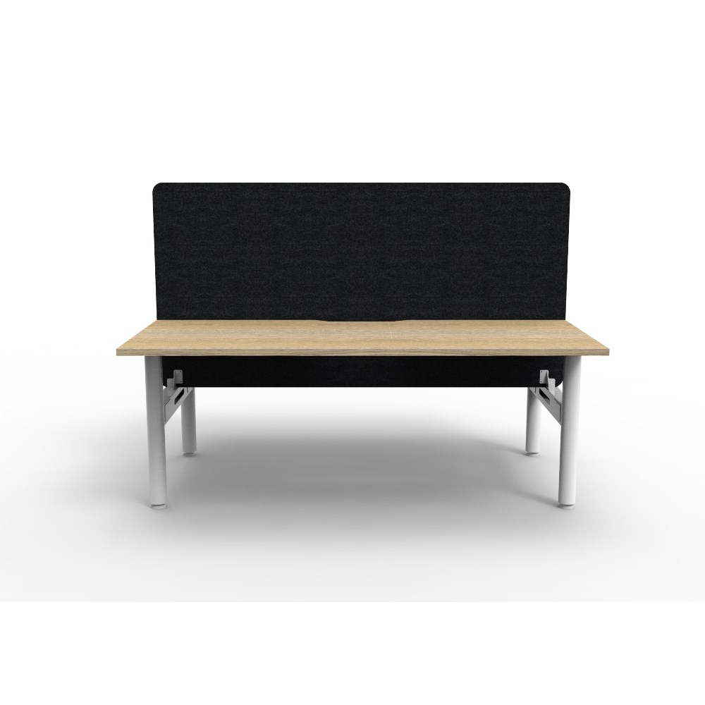 • 2 person back to back workstation with Natural Oak top and White Satin frame, Black Eco screen.