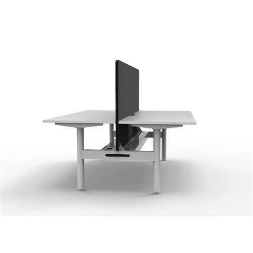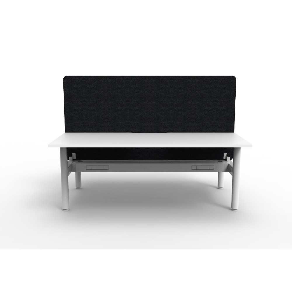 • 2 person back to back workstation with White top and White Satin frame, Black Eco screen and cable tray.