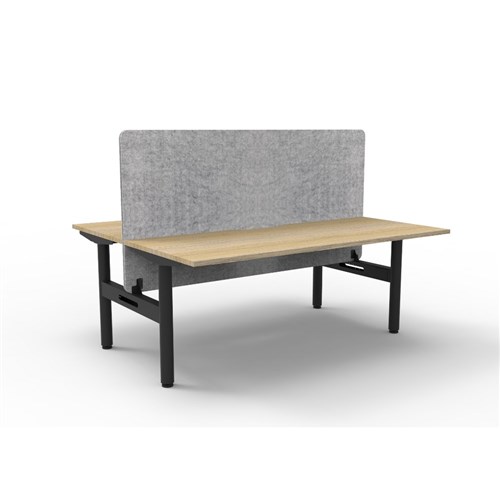 • 2 person back to back workstation with Natural Oak top and Black Satin frame, Grey Eco screen.