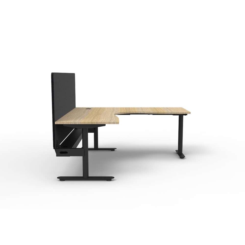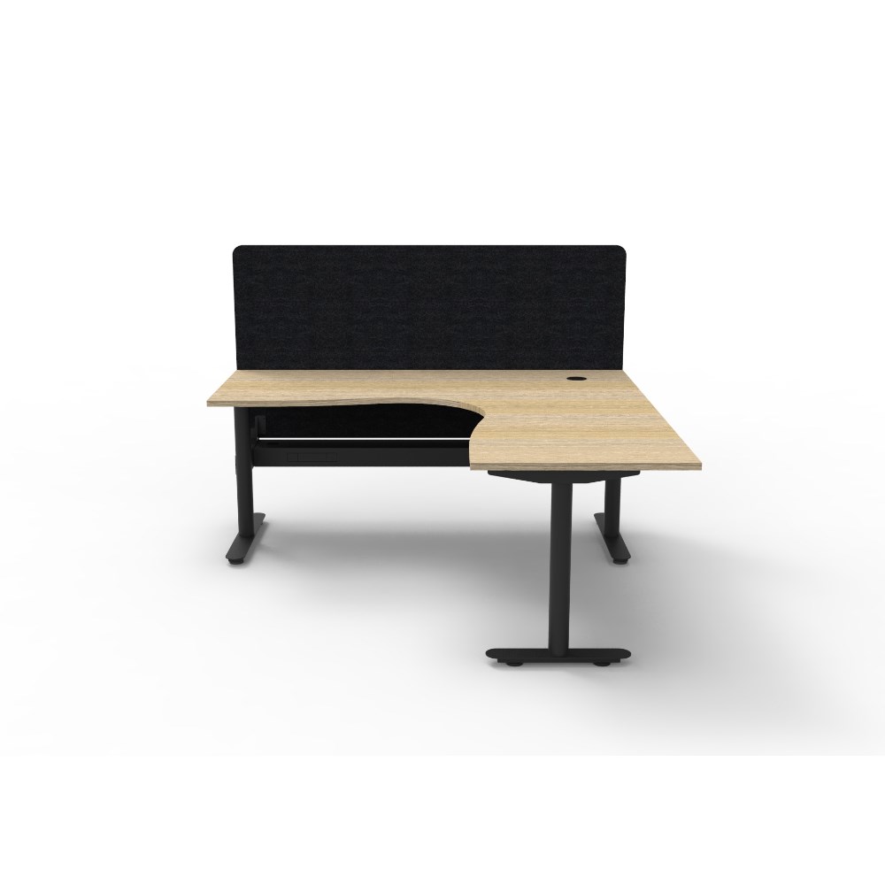 Rapidline Halo Static Corner Workstation Black Eco Screen + Tray 1800/1500W x 730mmH Oak/B