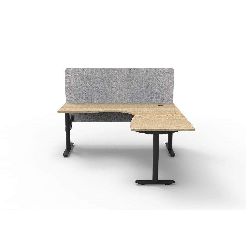 • Corner workstation with Natural Oak top and Black Satin frame, Grey Eco screen.