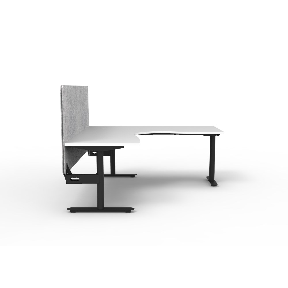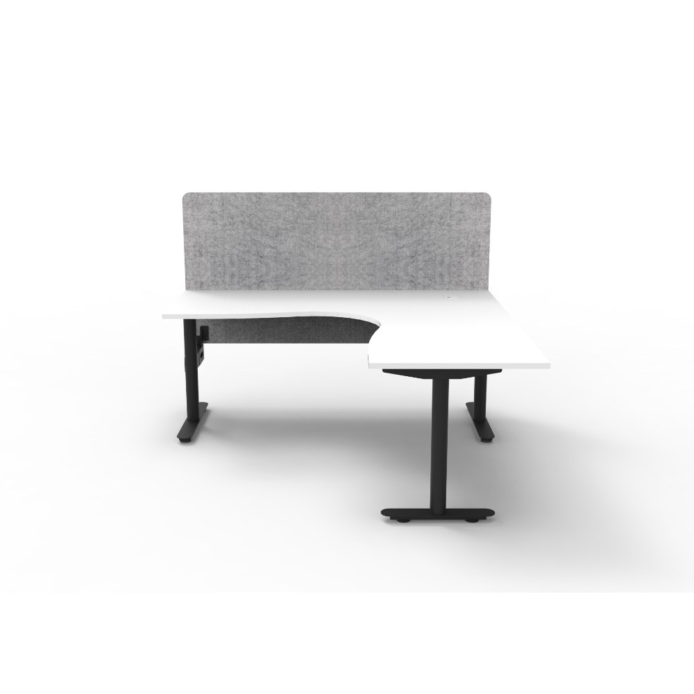 • Corner workstation with White top and Black Satin frame, Grey Eco screen.