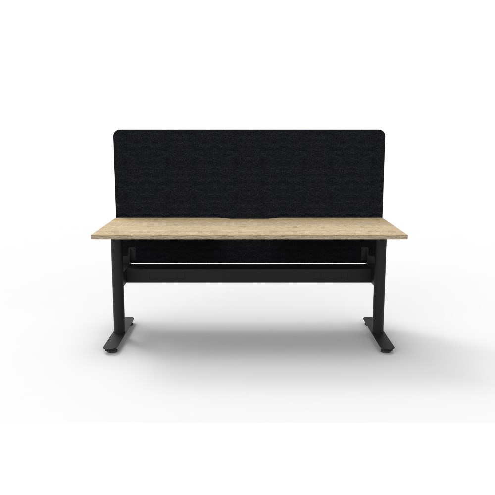 • Single sided workstation with Natural Oak top and Black Satin frame, Black Eco screen and cable tray.