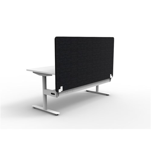 • Single sided workstation with White top and White Satin frame, Black Eco screen and cable tray.