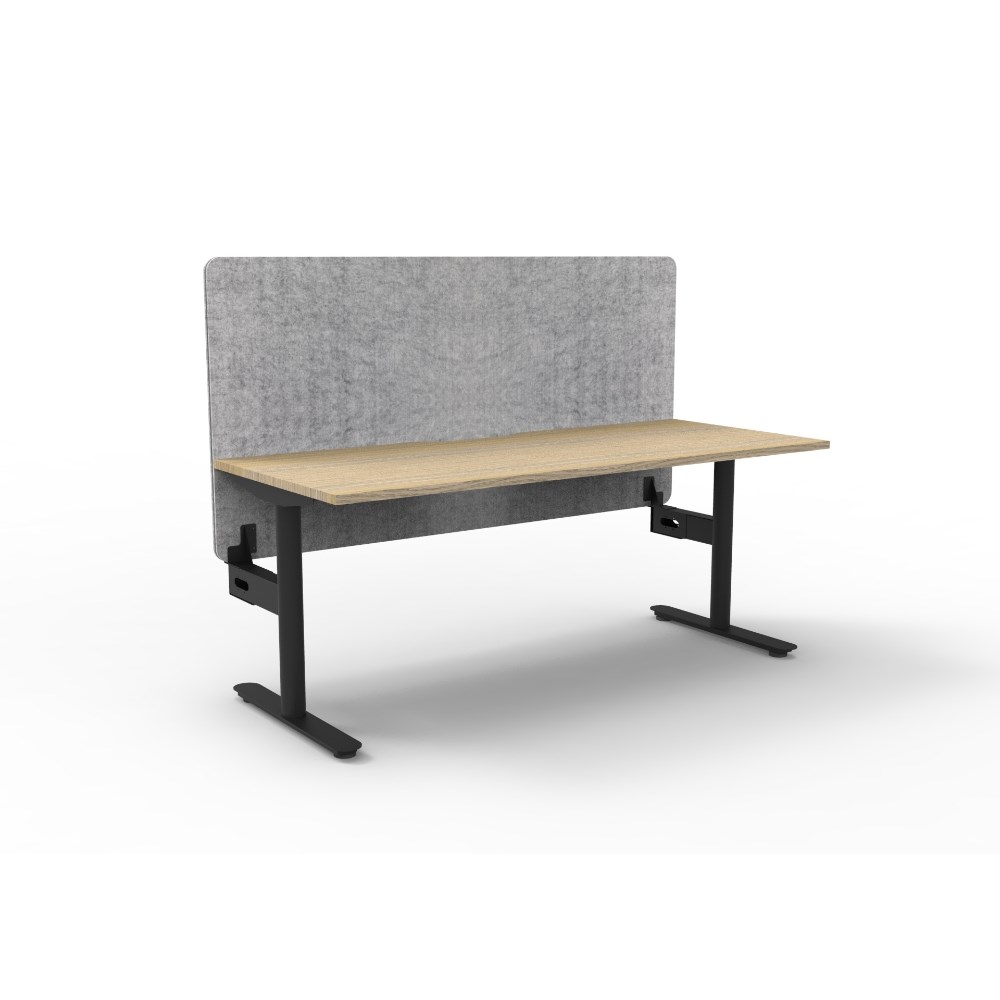 • Single sided workstation with Natural Oak top and Black Satin frame, Grey Eco screen.