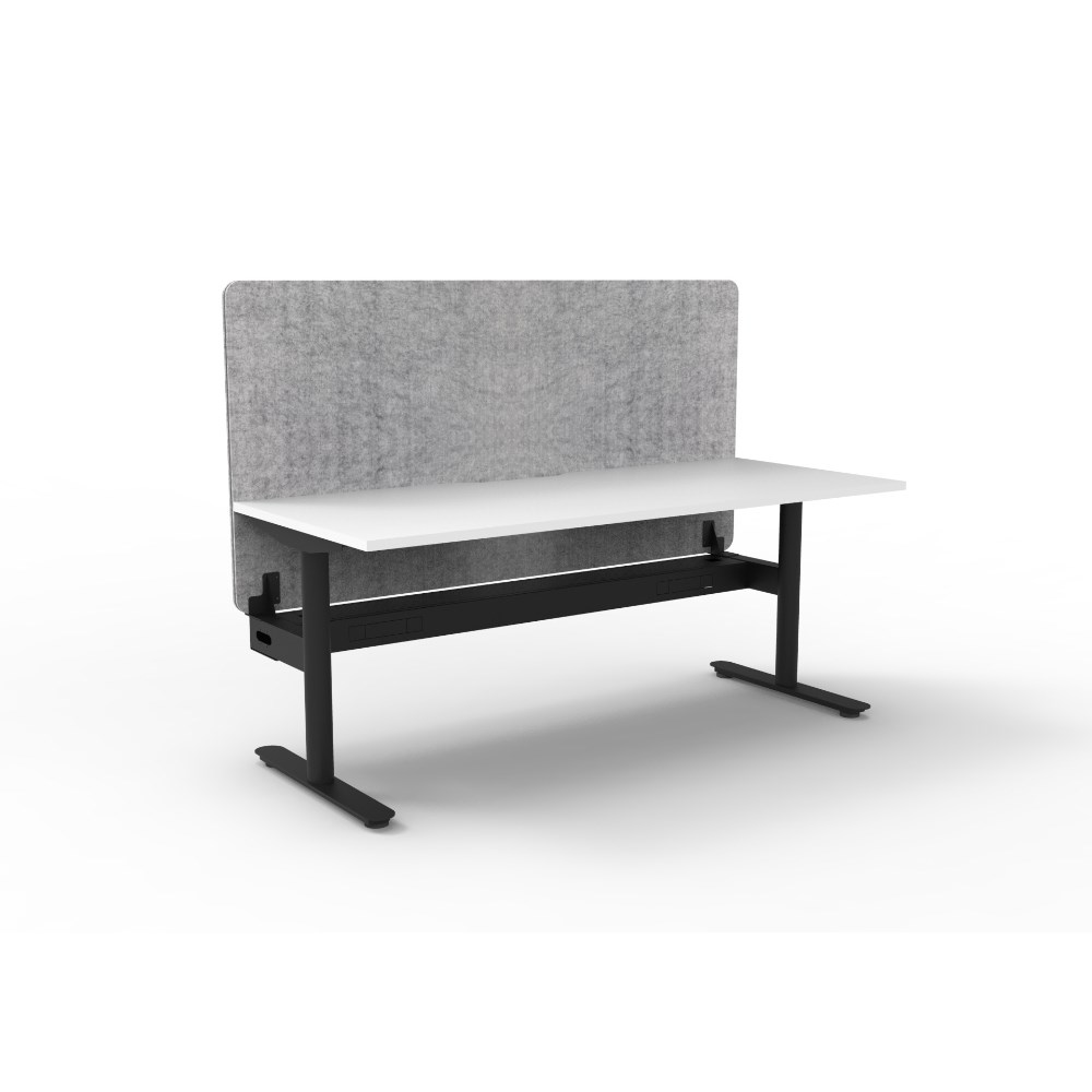 • Single sided workstation with White top and Black Satin frame, Grey Eco screen and cable tray.