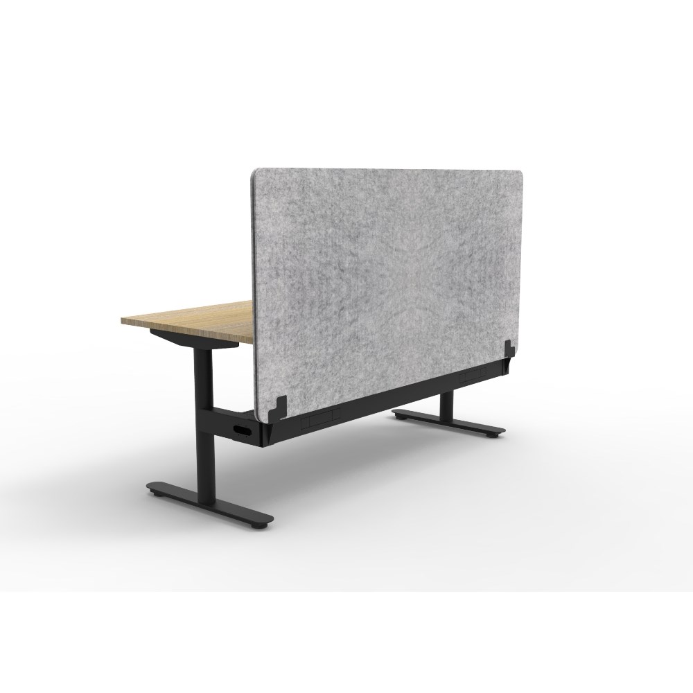 • Single sided workstation with Natural Oak top and Black Satin frame, Grey Eco screen and cable tray.