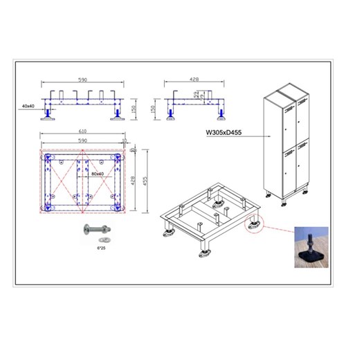 • Suitable for 305W x 455mmD Lockers ONLY.