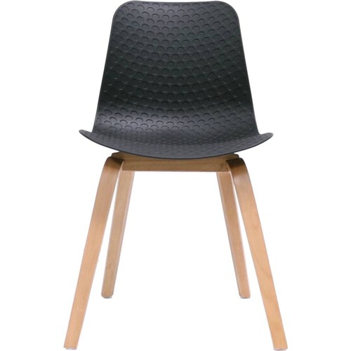 Rapidline Lucid Breakout Room Chair Light Oak Timber Leg Black Patterned Poly Shell