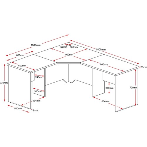 Rapidline Rapid Worker Corner Workstation 1800/1500W x 600D x 730mmH Beech/Ironstone