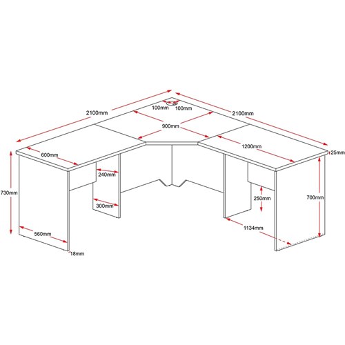 Rapidline Rapid Worker Corner Workstation 2100/2100W x 600D x 730mmH Oak And Ironstone