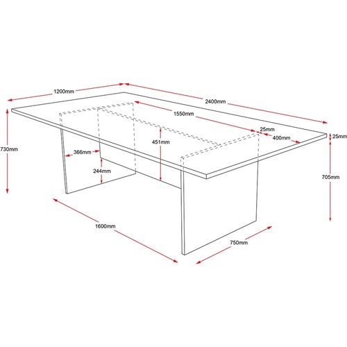 Rapidline Rapid Worker Meeting And Boardroom Table 2400W 1200mmD Cherry/Ironstone