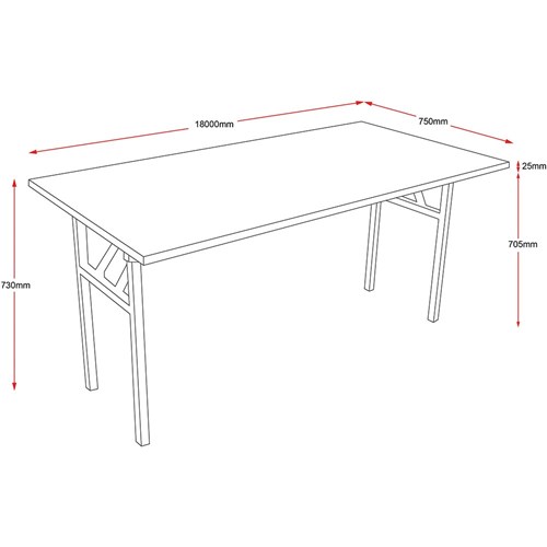 Rapidline Steel Frame Folding Table 1800W x 750D x 730mmH Oak Top Black Frame