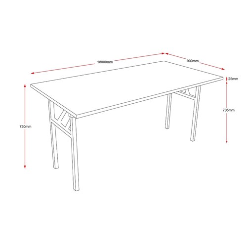 Rapidline Steel Frame Folding Table 1800W x 900D x 730mmH Cherry Top Black Frame