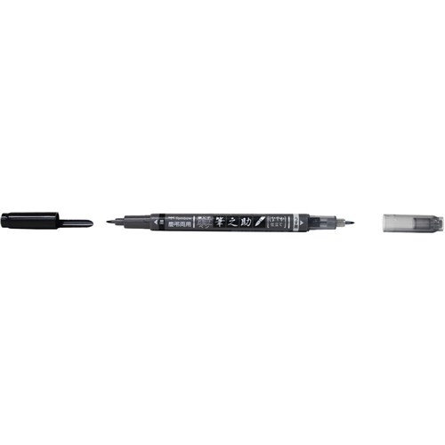 Tombow Fudenosuke Pen Twin Tip Black & Grey