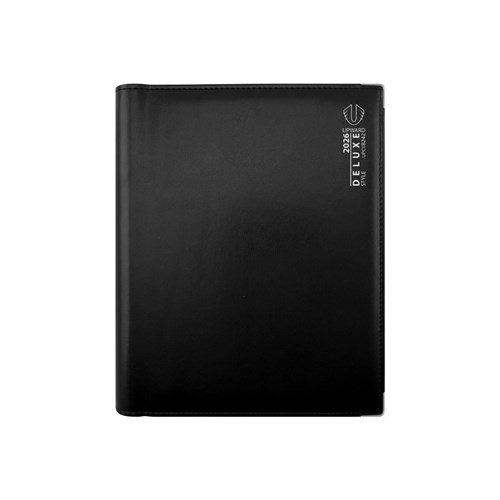 • Double wire binding. Lay flat opening. Ribbon marker. Tabs. Translucent pocket.