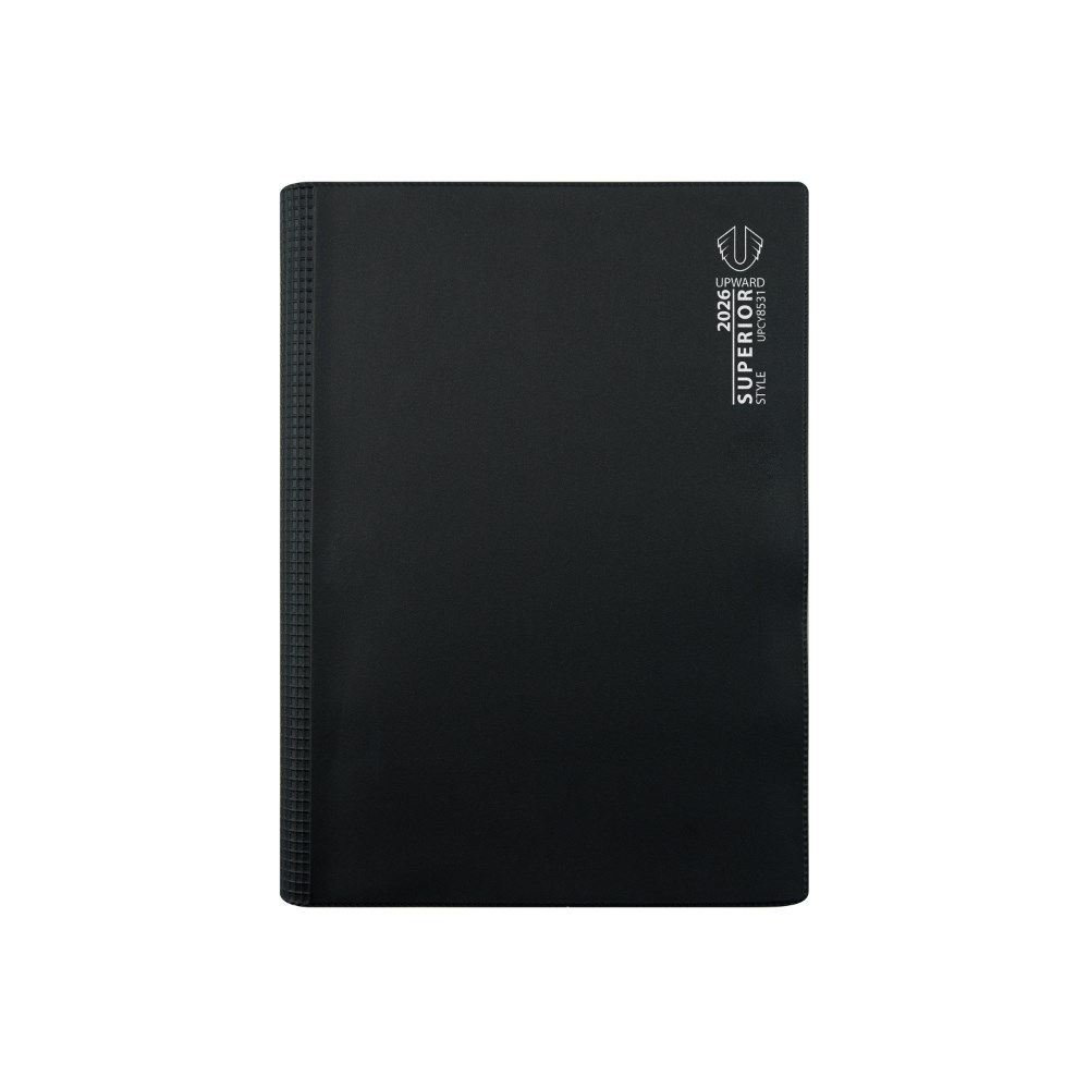 • Featuring a padded, phthalate free, PVC cover, pockets for storing business cards and wire-o binding to allow the diary to lie completely flat when open.