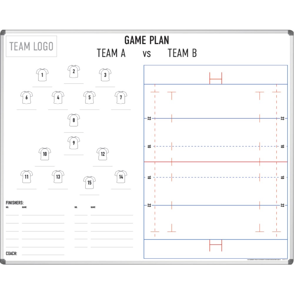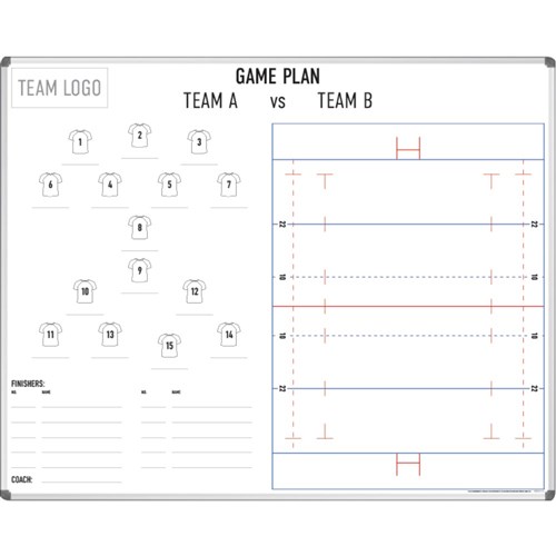 Visionchart Coaches Tactical Whiteboard 1500 x 1200mm Rugby Union Aluminium Frame