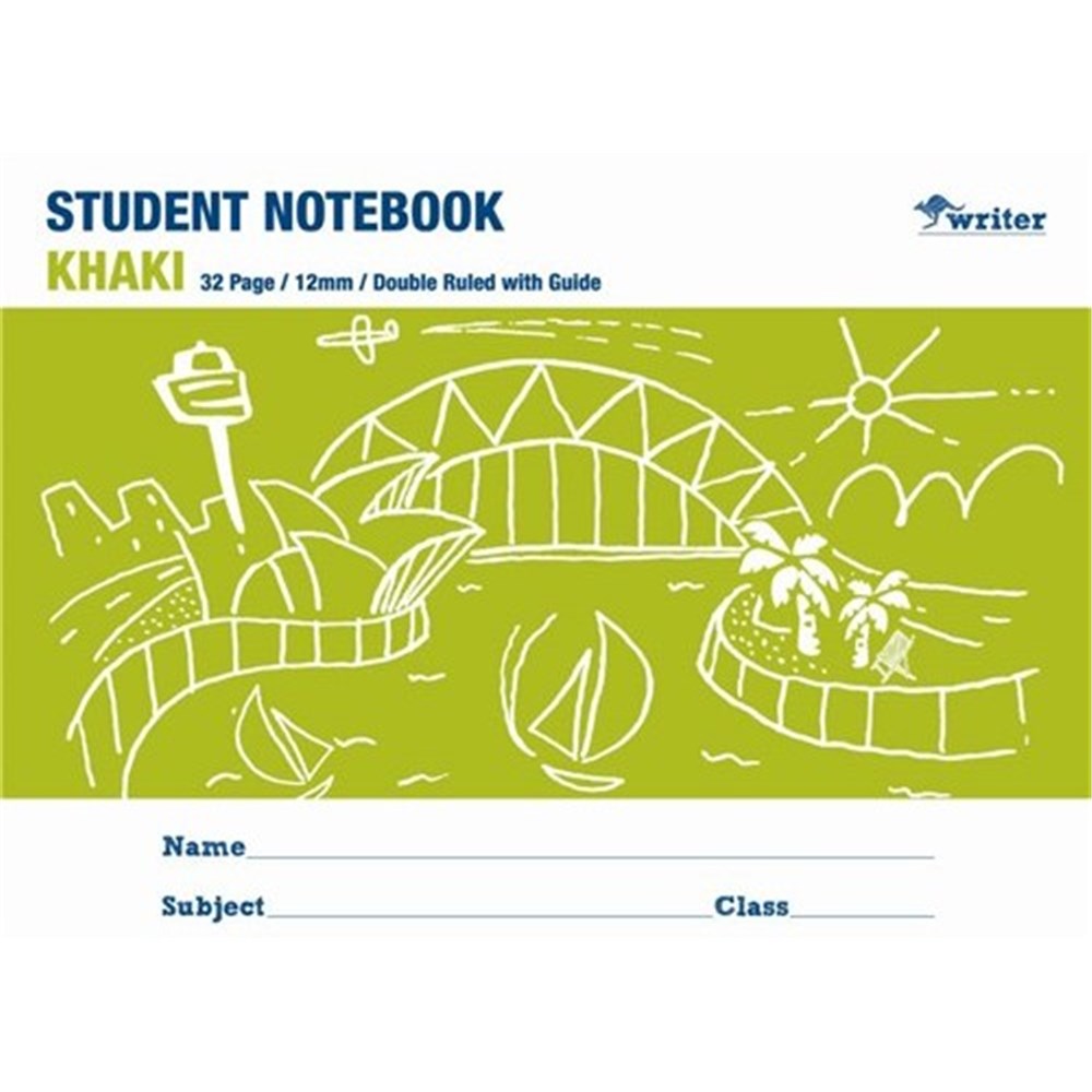 WRITER STUDENT NOTE BOOK KHAKI 12mm D/R + guidelines 32pge