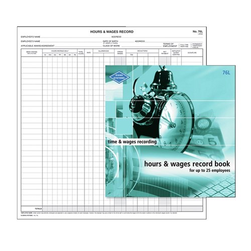 Zions 76L Hours & Wages Book Up To 25 Employees 270x265mm